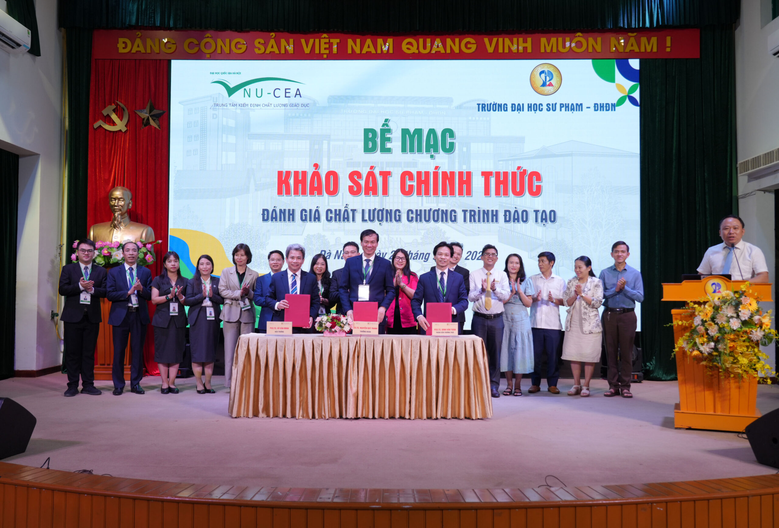Tại buổi lễ, Trường Đại học Sư phạm – ĐHĐN, Đoàn đánh giá ngoài và Trung tâm Kiểm định chất lượng giáo dục – ĐHQGHN đã ký biên bản hoàn thành đợt khảo sát chính thức.