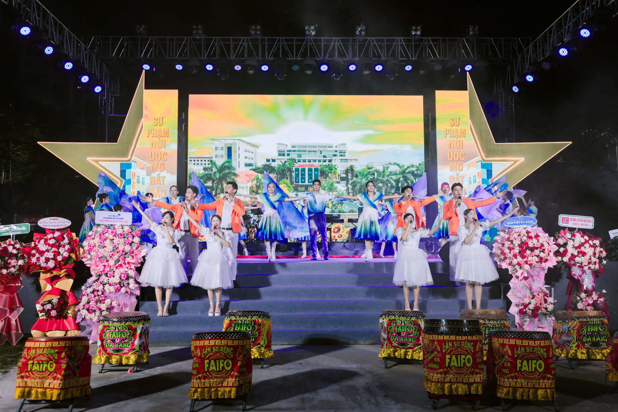 Tối 02/10, Trường Đại học Sư phạm – Đại học Đà Nẵng (ĐHĐN) tổ chức chương trình khai khóa và chào đón tân sinh viên khóa tuyển sinh năm 2025 với chủ đề “Viết tiếp ước mơ”. Đây là sự kiện thường niên nhằm tôn vinh các tân sinh viên đạt thành tích cao trong kỳ tuyển sinh, khen thưởng sinh viên xuất sắc toàn diện, đồng thời tạo không khí gắn kết, truyền cảm hứng và khơi dậy khát vọng học tập, cống hiến trong sinh viên.