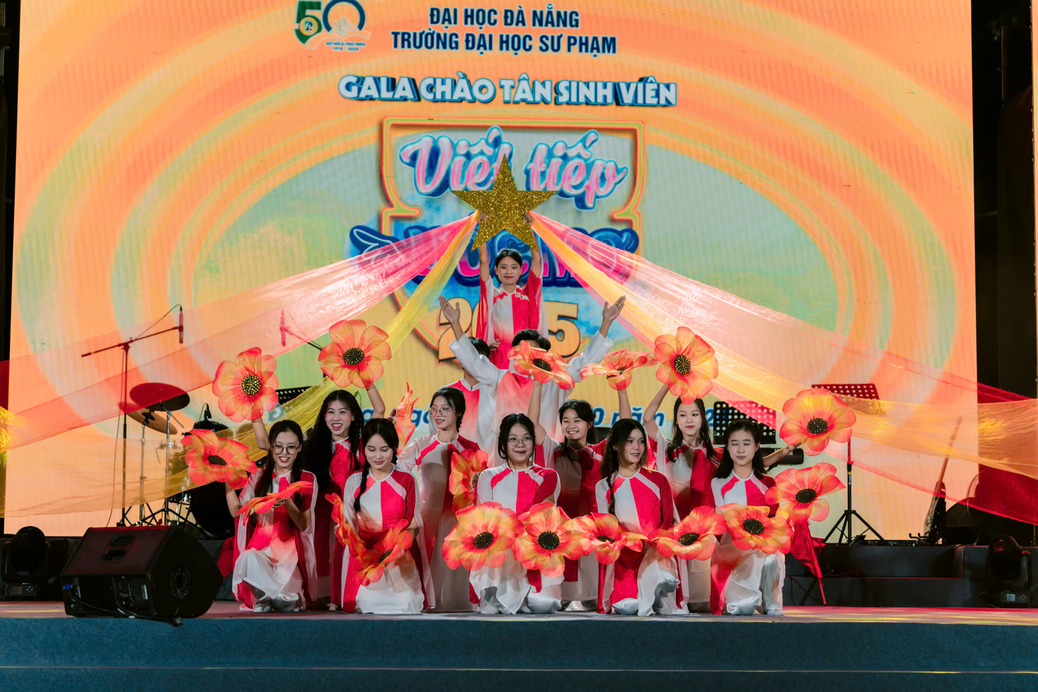 Gala chào đón tân sinh viên với chủ đề “Viết tiếp ước mơ” với sự tham gia biểu diễn của các nghệ sĩ khách mời như: ca sĩ Hoàng Lâm, Bão Ngọc, Diễm Phúc, Quỳnh Anh và các MC Khánh Nhi, Huỳnh Đức… Những tiết mục sôi động, hấp dẫn và đầy cảm xúc đã mang đến không khí trẻ trung, tươi vui, đồng thời truyền tải thông điệp ý nghĩa về hành trình theo đuổi ước mơ, vượt qua thử thách và trưởng thành từ mái trường Sư phạm. Gala không chỉ là sân chơi nghệ thuật mà còn là dịp để các tân sinh viên gặp gỡ, giao lưu với các thế hệ đi trước và các thầy cô, từ đó hình thành sự kết nối và khơi mở những định hướng tích cực cho chặng đường học tập sắp tới. “Viết tiếp ước mơ” không chỉ là chủ đề của đêm Gala, mà còn là lời nhắn gửi đến mỗi tân sinh viên: hãy bắt đầu hành trình mới với niềm tin, sự nỗ lực và khát vọng vươn lên.