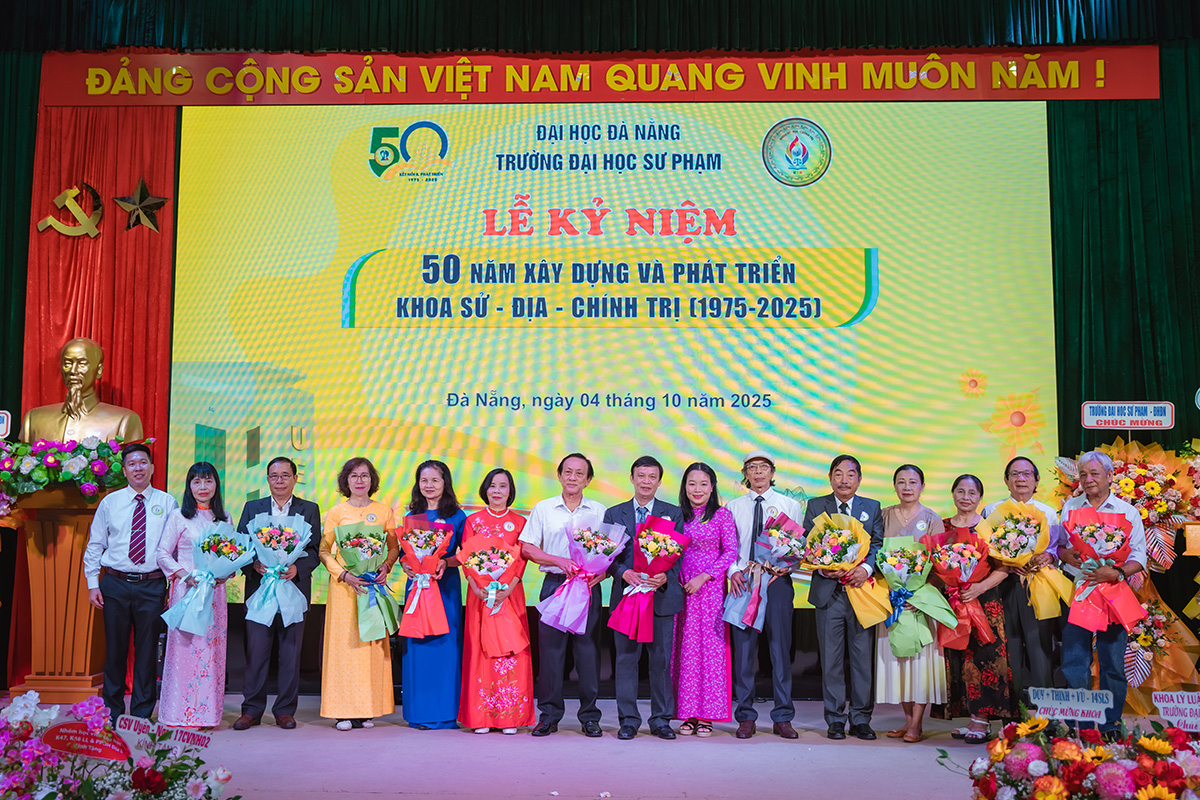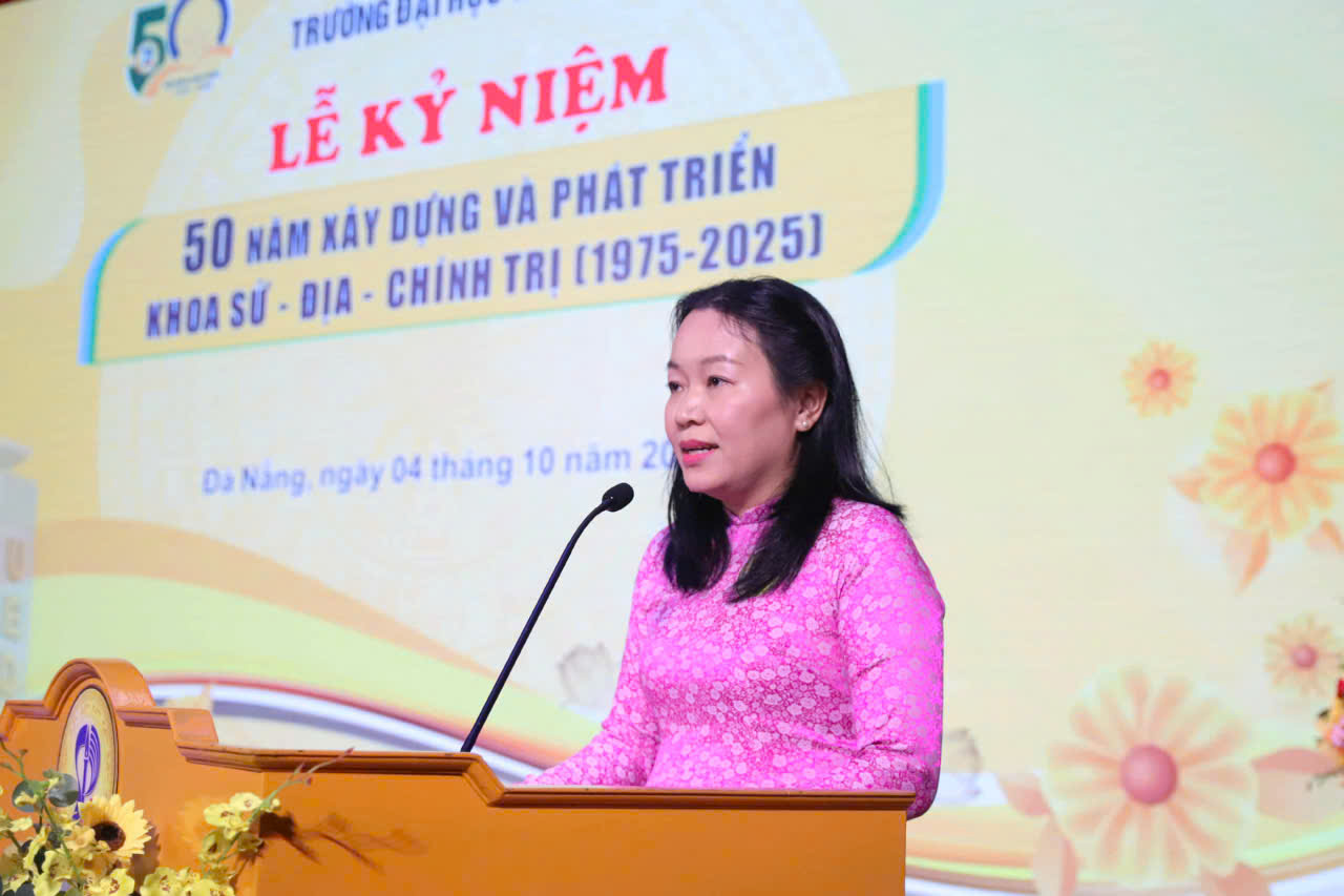 Phát biểu tại buổi lễ, PGS.TS. Võ Văn Minh nhấn mạnh: “Khoa Sử – Địa – Chính trị đã có những đóng góp to lớn cho sự nghiệp giáo dục, đào tạo và sự trưởng thành của Trường Đại học Sư phạm – ĐHĐN… Nửa thế kỷ là một hành trình đủ dài để tự hào nhìn lại, đồng thời cũng là dấu mốc để mở ra một chặng đường mới với nhiều khát vọng và trách nhiệm hơn. Di sản ấy nhắc nhở chúng ta rằng mỗi bước đi trong hiện tại phải tiếp nối niềm tin và tinh thần trách nhiệm của quá khứ. Tri ân không chỉ dừng lại ở việc nhìn về, nhắc lại, khắc ghi mà còn phát huy, đổi mới và kiến tạo tương lai.”